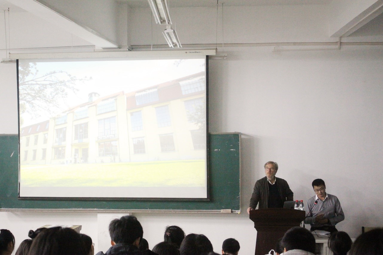 1104室,格纳德(Siegfried Gronert)教授为我院师生带来了一场主题为“Social Design”的专题讲座,讲座由刘军副教授主持,程璜鑫老师翻译。桂宇晖院长曾健友副院长等多名院领导出席了本次讲座。