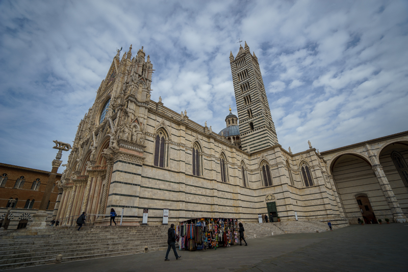 午时11点15分,访学团一行经锡耶纳卡加纳音乐学院,前往锡耶纳大教堂进行参观。穿行在锡耶纳的街巷,马林老师向访学团介绍了锡耶纳大教堂的历史。他表示:“锡耶纳大教堂时意大利最大的教堂之一,是始建于1136年的哥特式建筑。教堂内藏有诸多珍宝,而尼古拉·皮萨诺及米开朗基罗的雕塑作品亦藏于其中。”语毕,访学团成员均对该教堂有了初步的了解。行至锡耶纳大教堂的门前,马林老师便携访学团成员在此一同观赏教堂的外部构造,并邀访学团在此合影留念。