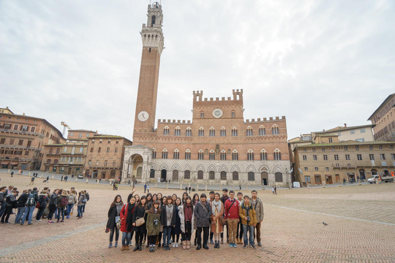 早10点12分,访学团在马林老师的带领下抵达锡耶纳。交错的小径密布在这座城市之中,古朴与现代的碰撞在这里形成了奇妙的风格。面对红黄交织的锡耶纳建筑,马林老师认为,土红和土黄是属于锡耶纳的色彩,而其城市本身对于意大利来说,重要性并不亚于佛罗伦萨。