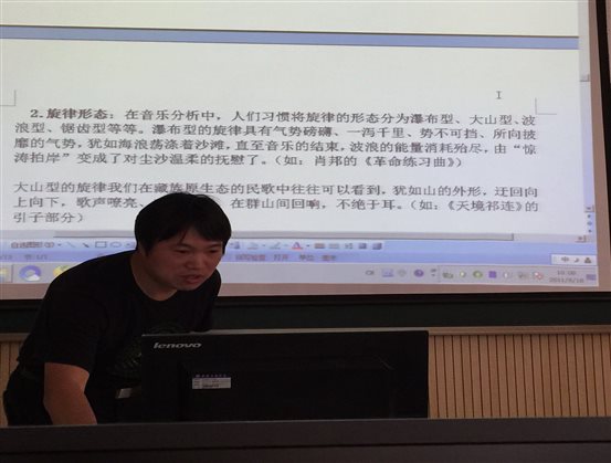 (武汉音乐学院电子音乐中心主任冯坚副教授在给学员讲课)