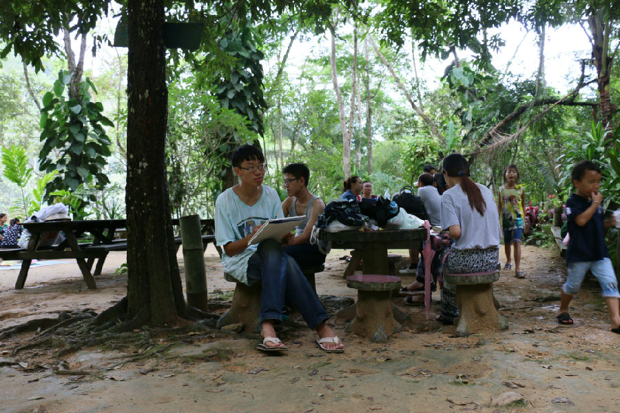 (摄影 王铭毓)9月6日上午,老挝写生实习小组老师和同学们进行了第一次写生讲评。写生组老师以前一天速写作业为对象阐述了对速写的认识和看法,希望帮助大家更自由更自主的表达所见所感,反映当地特点,展现个体感受。随后,写生组展开写生活动。