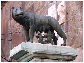 卡比托利欧广场是由艺术大师米开朗琪罗亲自设计的,大气而端庄,建于中世纪是罗马元老院开会的地方,它的正面是罗马市政府,它的建成代表着罗马城新的政治中心,它右边的母狼和一对孪生兄弟象征着罗马城。邻边的古罗马广场遗址上屹立着提图斯凯旋门、奥古斯都凯旋门等古罗马建筑还有昔日古罗马帝国时期奴隶交易的残垣断壁和远方的罗马斗兽场都依稀可见。