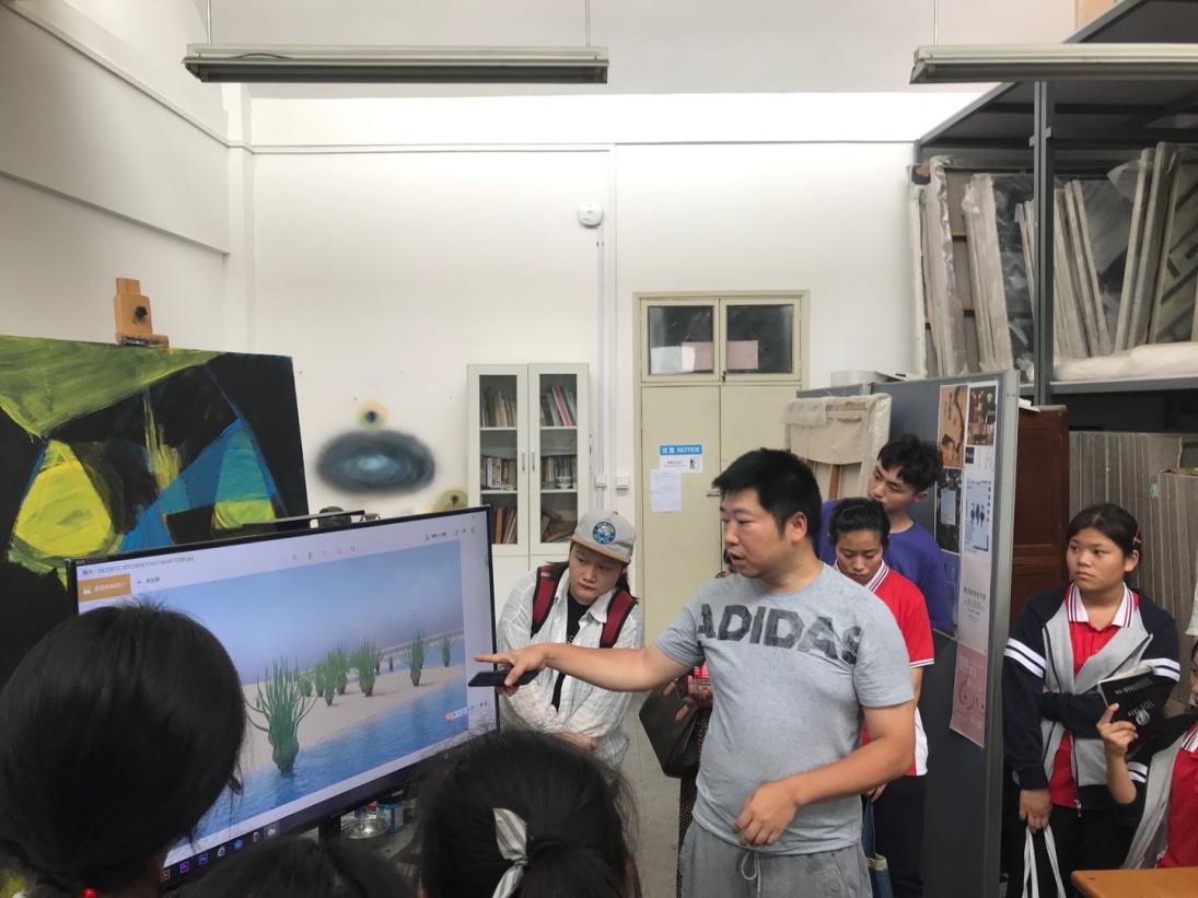 之后,同学们参观了视觉与媒体设计系哈达老师的工作室。哈达老师为同学们展示了其科研团队复原古植物的图片及科普插画。哈达老师的团队使用传统手绘与软件结合的方法,绘制出精美的图片,生动展现出远古植物的形态。
