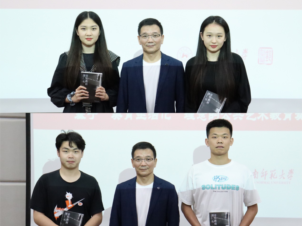最后,郭声健教授分享了湖南师范大学的美育短片,并向师生们赠送了他所编写的美育书籍。