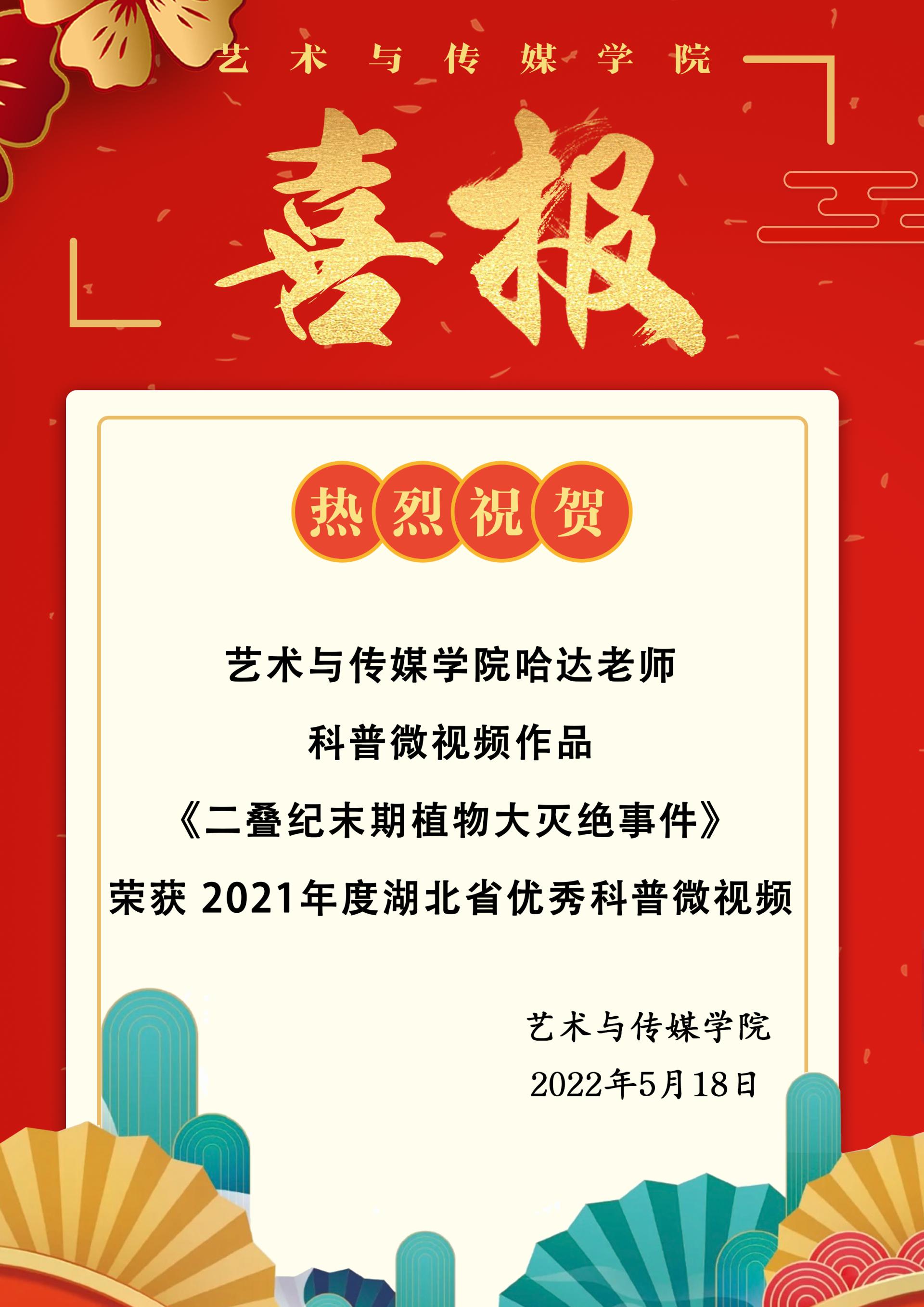 喜报!热烈祝贺我院哈达老师作品获2021年度湖北省优秀科普微视频