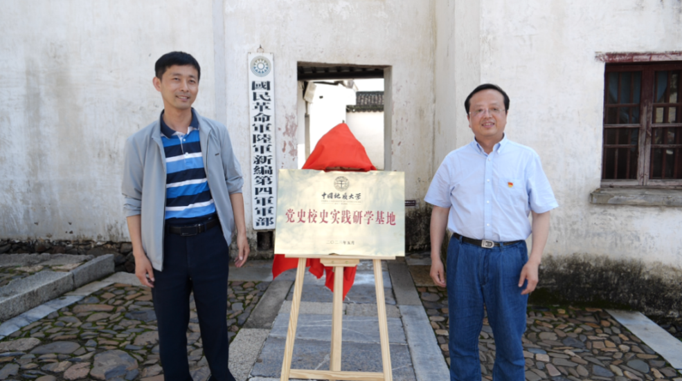 “六组联学”首先来到新四军军部旧址纪念馆,依次举行了我校与新四军军部旧址纪念馆共建“中国地质大学(武汉)党史校史实践研学基地”的签约仪式和揭牌仪式。在签约仪式上,馆长洪帮介绍了纪念馆的基本概况及取得的成绩,表达了对学校及其辉煌历史的由衷崇敬,对我校“六组联学”结合党史校史教育、深入当地开展主题教育实践研学活动的真诚赞赏、热烈欢迎和诚挚谢意,并表示将大力支持基地建设。他希望学校将来利用节假日、重大纪念日等时间,组织师生到基地开展党史校史实践研学活动,接受红色教育,把新四军军部旧址纪念馆作为地大党史校史实践研学、宣传教育和思想政治教育的重要阵地。学校党委组织部长陈文武谈到,基地的建立将丰富我校党史校史研究与教育资源,要积极为引导本单位职工自觉运用唯物史观武装头脑、提升境界、推动工作发挥作用,为强化我校师生学习研究、宣传赓续党史校史的积极性和实践性作出贡献。她希望馆校双方共同建设好基地,“六组联学”充分发挥基地的作用,深入开展实践研学,提升研学实效。