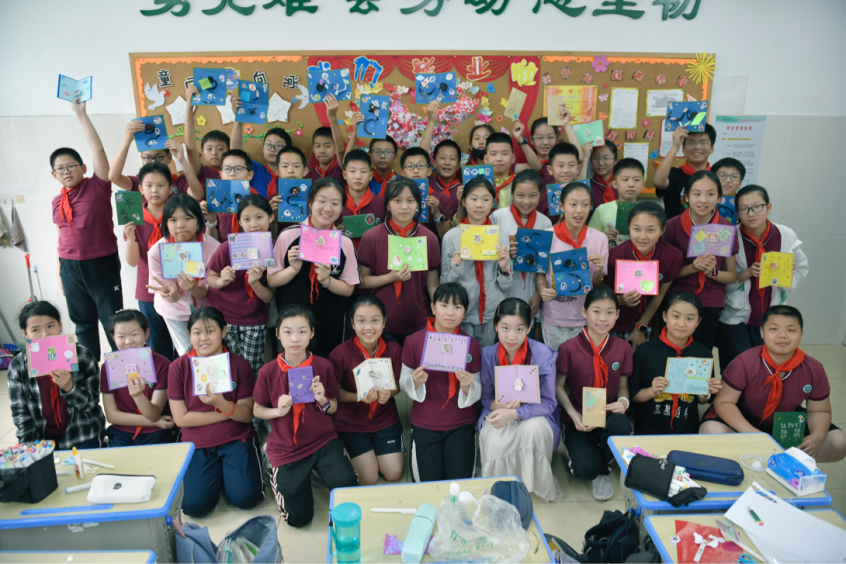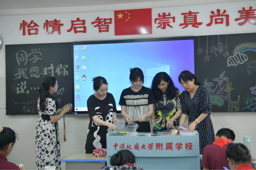 觅灮美育名师工作室的师生来到附属学校六年级一班的课堂,与44名即将毕业的小学生开展了一场精彩有趣的美育活动,在老师的讲授和指导下设计制作毕业立体贺卡。