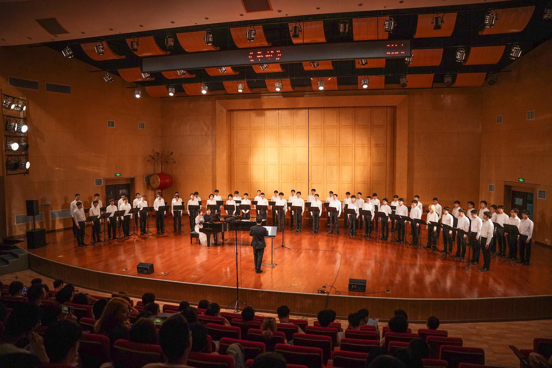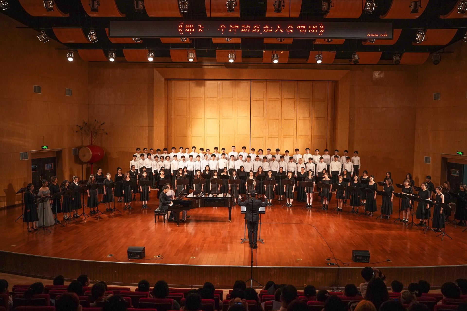 美育实践中心联合校团委等单位,组织全校115位非音乐专业学生共聚一堂,以声传情。校党委副书记王甫,相关职能部门及部分师生聆听了音乐会。