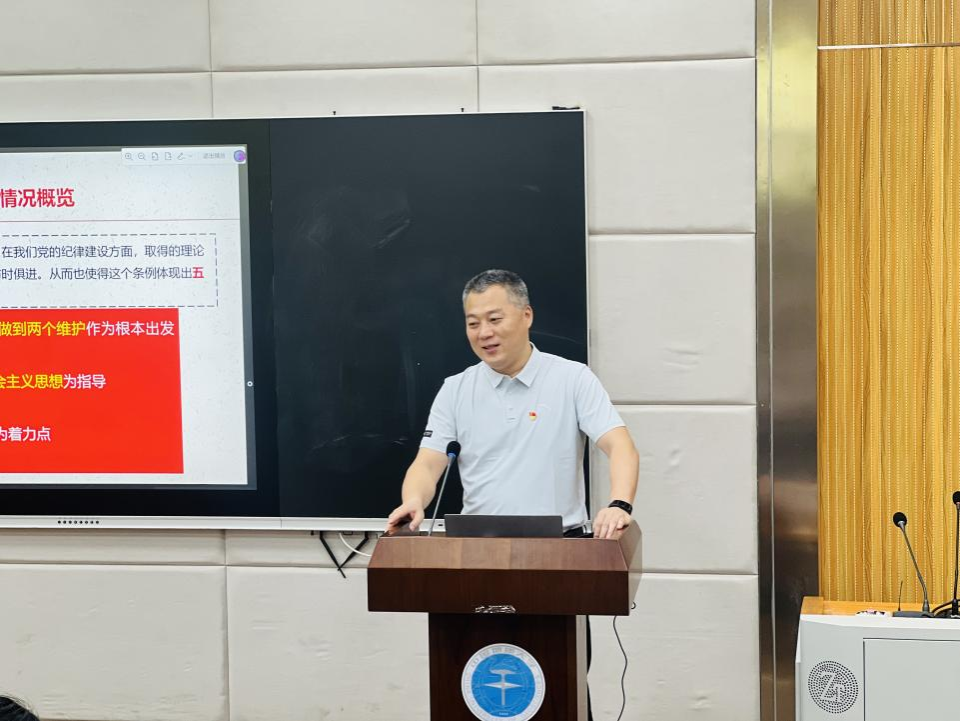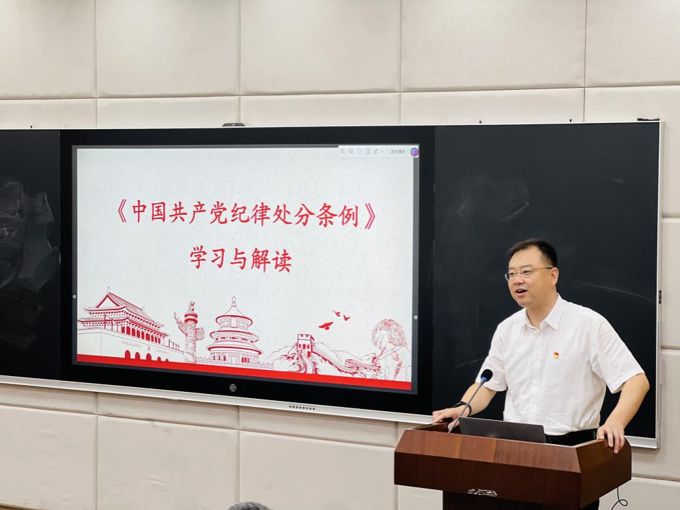 会议第二项,晋曦书记讲授廉洁教育专题党课,带领全体党员深入学习《中国共产党纪律处分条例》。晋书记指出,《条例》的修订本质上是不断概括我党在纪律建设方面所取得的理论创新、实践创新和制度创新成果,实现了纪律建设与时代发展的紧密融合,具有五个显著特点:一是坚定拥护两个确立,坚决做到两个维护作为根本出发点和落脚点;二是以习近平新时代中国特色社会主义思想为指引;三是紧密围绕中心,全力服务大局;四是着力解决群众反映强烈的突出问题;五是坚持纪在法前,纪严于法。他强调,深入领悟《中国共产党纪律处分条例》的关键在于三个方面:一是习近平总书记关于党的自我革命的核心理念;二是《条例》修订的背景及意义;三是“撇捺”人生的哲学内涵。
