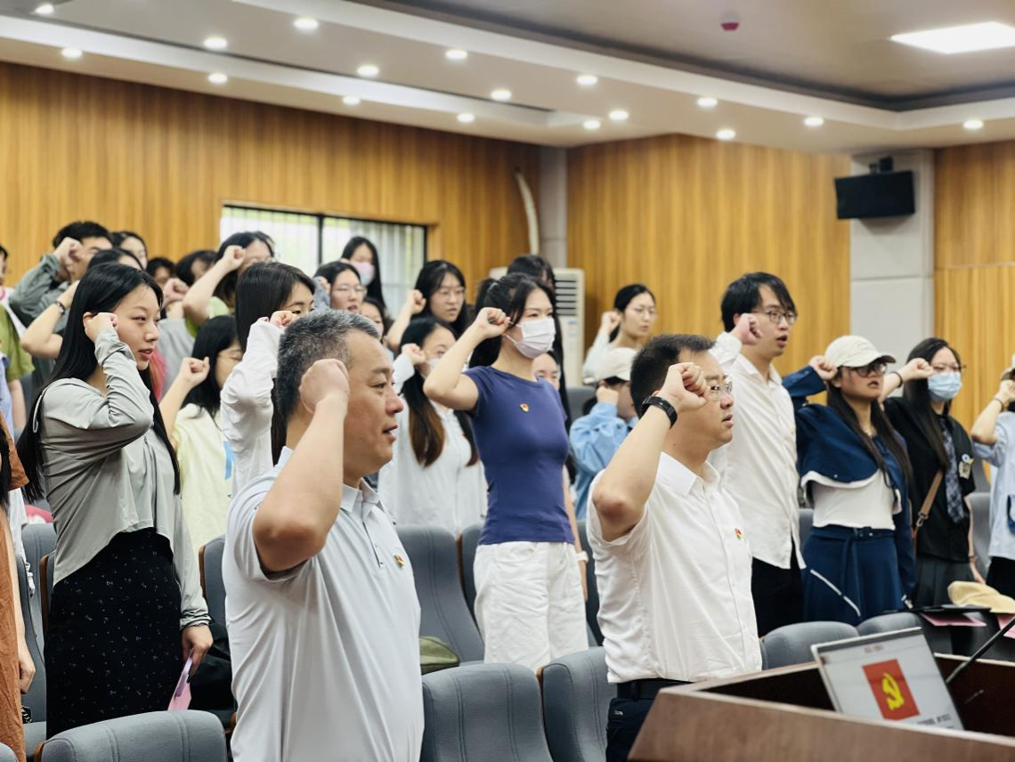 会议第一项,由学院党委书记晋曦带领毕业生党员重温入党誓词。