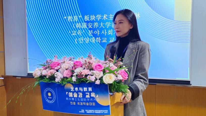 1104学术报告厅和韩国安养大学美丽领导馆4楼会议厅线下会场共同举办“2024年第二届中韩博士生学术大会”。本届会议主题为“艺术与教育”,青年学者们围绕“AI时代”“历史”“艺术”“设计”“教育”“融汇”板块开展学术交流。