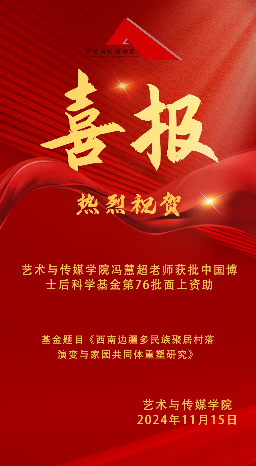 喜报!我院冯慧超老师成功获批中国博士后科学基金第76批面上资助