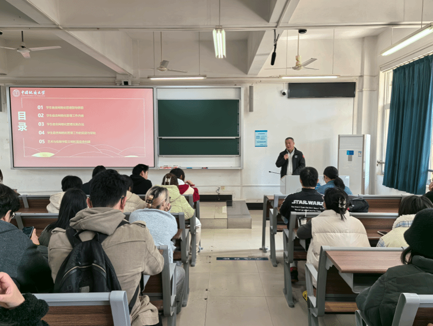 会议最后,辅导员曾戈晖介绍了学院即将开展的“文明和谐宿舍风采展示大赛”,动员大家积极参与,同时呼吁各级网格化管理员将会议内容学深悟透、落到实处,以“责任在心、行动在手” 的态度做好宿舍管理工作,主动收集学生诉求、反馈宿舍问题,切实发挥 “桥梁纽带” 作用。