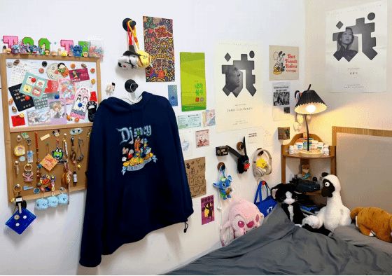 在研究生宿舍悦宾楼6109,一面独特的 “青春审美收纳墙” 吸引了所有人的目光。它不仅是物品的归置处,更是宿舍的“情绪看板”与“成长展台”。分层清晰的书架上,专业书籍与学术资料码放整齐,彰显着严谨的治学态度;而穿插其间的趣味小摆件、风格各异的水杯,则悄悄诉说着生活的点滴甜意。这里,专业成长的专注底色与日常生活的情感温度和谐共生,每一件物品都“各归其位”,共同将热爱整理成一种可视的温暖与秩序之美。