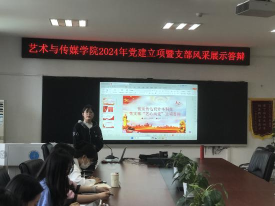 各学生党支部、党建办部门负责人依次进行ppt汇报部门2024年立项方案。在答辩环节中,各党支部分别围绕“传播荆楚文化,点亮城市地图”“红色建筑忆党史,实践党课筑党性”“探索“艺术+”党建工作模式”“红音嘹亮,艺同璀璨”等主题,从支部规范化、制度化建设入手,坚持理论联系实际,深挖理论知识内涵,创新活动形式等维度,对立项基础背景、工作思路、特色活动与实施计划等进行详细阐述。